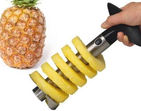 Slicing pineapple is a tedious task, but now with the new corer, it is much more comfortable. Quickly it peels, slices and cores a fresh pineapple in just about 30 seconds. It discards entirely created rings as evacuating the center in the shell. It is designed in such a way so that it easily slices, grip, and turn. Chop off the upper portion of the pineapple and then push in the twist and cutter. It functions like a corkscrew, eliminating the flesh in pineapple rings.